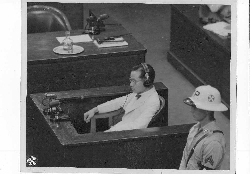25 AUG. 47 IMTFE WAR CRIMES TRIALS IN TOKYO: Tatsukichi Miyo, ex-captain in the Japanese Navy, appears as a witness for the defense before the IMTFE, Tokyo, Japan, during WCTs of the 25 alleged JWCs. While serving in section one (operations section) of the Japanese Naval General Staff, he held the rank of Commander and participated in the planning of Pearl Harbor attack. Photographer—Snyder Photograph by U.S. Army Signal Corps OFFICIAL SIGNAL CORPS PHOTO Reproduction prohibited unless credit line is given to Signal Corps, U.S. Army.