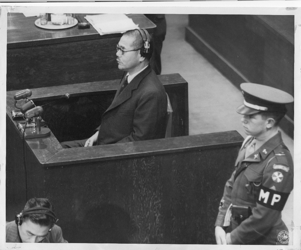 5 NOV. 47 IMTFE WAR CRIMES TRIALS IN TOKYO: Takeo Iwakuro appearing on behalf of the accused Kuniaki Koiso testifies during War Crimes Trials of the 25 alleged major Japanese war criminals at the International Military Tribunal for the Far East, Tokyo, Japan. Photographer—Snyder Photograph by U.S. Army Signal Corps OFFICIAL SIGNAL CORPS PHOTO Reproduction prohibited unless credit line is given to Signal Corps, U.S. Army.